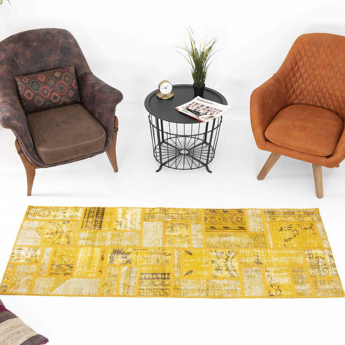 Transform your space with our Hand Knotted Wool Oriental Rug, measuring 78 x 197 cm (2' 7'' x 6' 6'') , in a stunning Yellow hue. Crafted by skilled nomadic weavers in Turkey, this unique rug is a true masterpiece, inspired by rare antique tribal rugs from the heart of Anatolia .