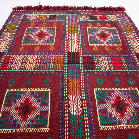 Oriental Kilim Cicim Handmade Wool On Wool 90 X 110 Cm - 3' X 3' 8'' Burgundy C021 ER01