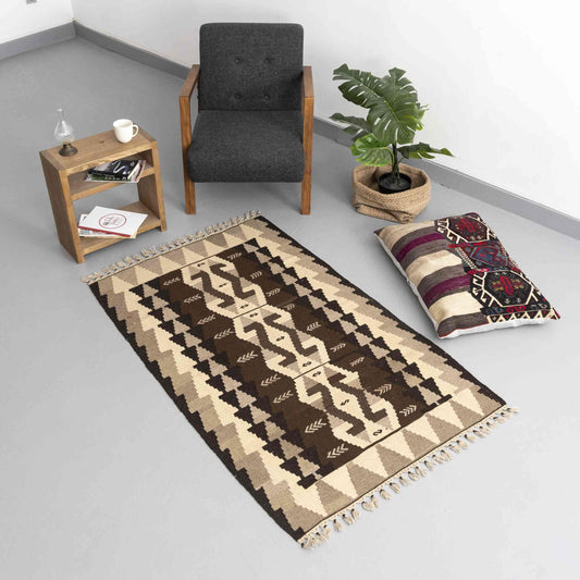 Oriental Kilim Anatolian Handmade Wool On Wool 106 X 171 Cm - 3' 6'' X 5' 8'' Brown C005 ER01