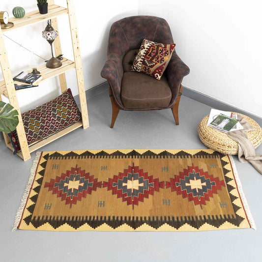 Oriental Kilim Anatolian Handmade Wool On Wool 88 X 164 Cm - 2' 11'' X 5' 5'' Sand C007 ER01