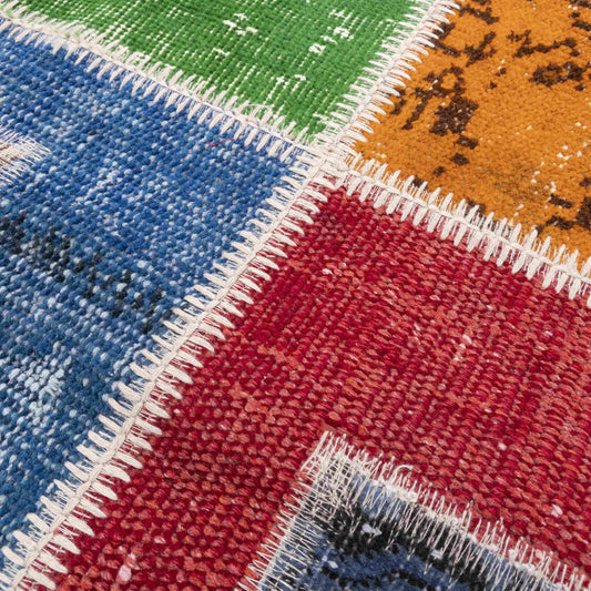 Oriental Rug Patchwork Hand Knotted Wool On Cotton 154 x 237 Cm - 5' 1'' x 7' 10'' Multicolor C016 ER12