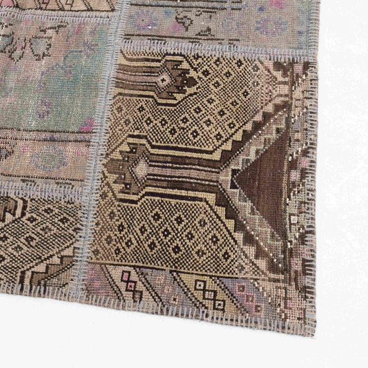 Oriental Rug Patchwork Hand Knotted Wool On Cotton 196 x 300 Cm - 6' 6'' x 9' 11'' Multicolor C016 ER23