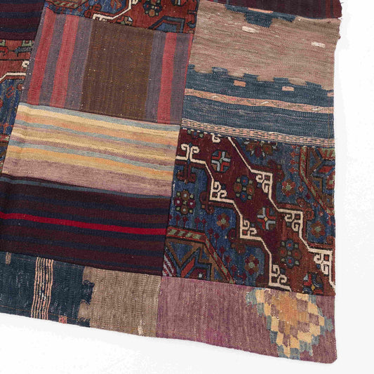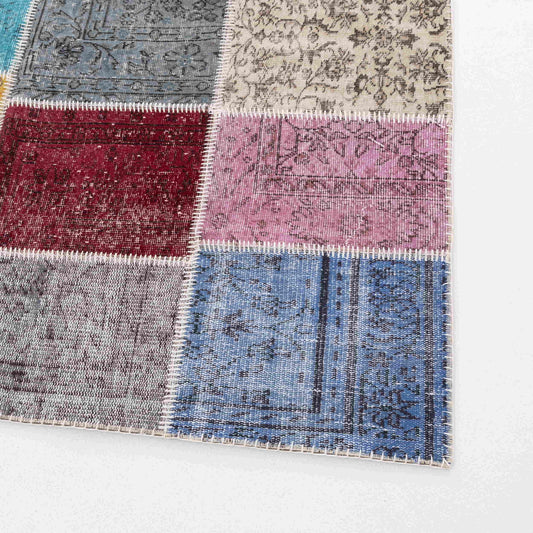 Oriental Rug Patchwork Hand Knotted Wool On Wool 150 x 188 Cm - 5' x 6' 3'' Multicolor C016 ER12