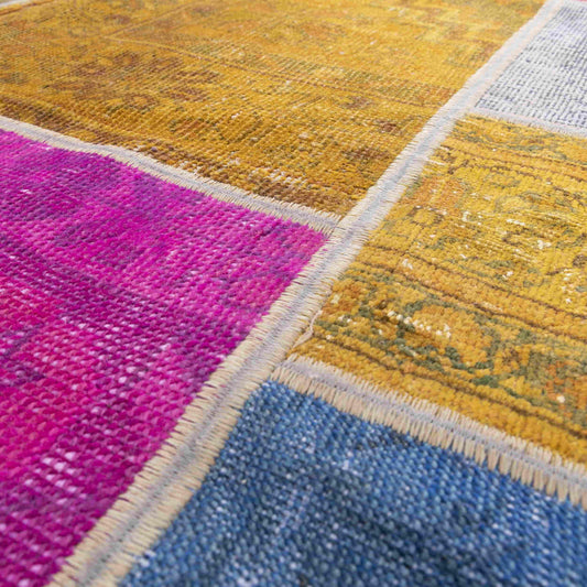 Oriental Rug Patchwork Hand Knotted Wool On Wool 147 x 207 Cm - 4' 10'' x 6' 10'' Multicolor C016 ER12