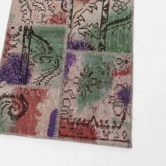 Oriental Rug Patchwork Hand Knotted Wool On Wool 90 x 220 Cm – 3' x 7' 3'' Multicolor C016 ER01