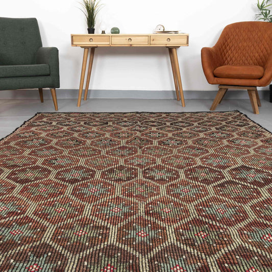 Oriental Kilim Cicim Handmade Wool On Wool 200 x 293 Cm - 6' 7'' x 9' 8'' Brown C005 ER23