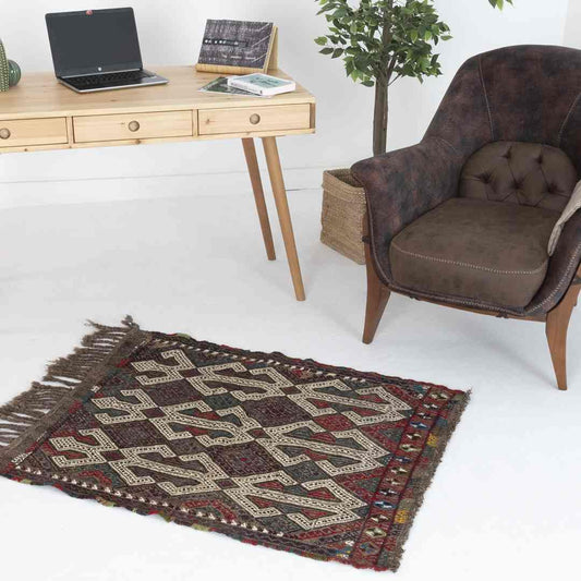 Oriental Kilim Cicim Handmade Wool On Wool 92 x 111 Cm - 3' 1'' x 3' 8'' Brown C005 ER01