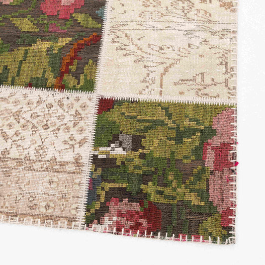 Oriental Rug Patchwork Hand Knotted Wool On Cotton 200 x 300 Cm - 6' 7'' x 9' 11'' Green C015 ER23