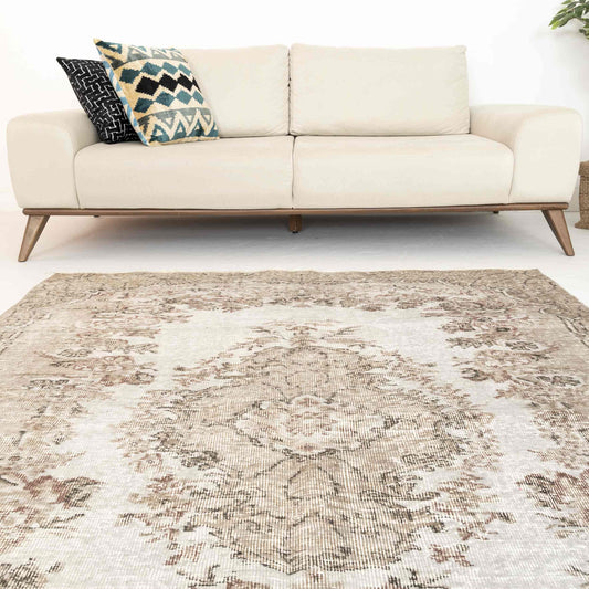 Oriental Rug Vintage Hand Knotted Wool On Cotton 175 x 250 Cm - 5' 9'' x 8' 3'' Sand C007 ER12