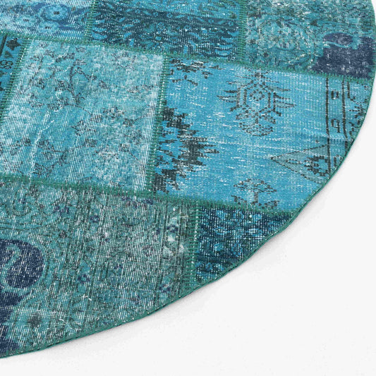 Oriental Round Rug Patchwork Hand Knotted Wool On Wool 250 x 250 Cm - 8' 3'' x 8' 3'' Turquoise C019 ER23