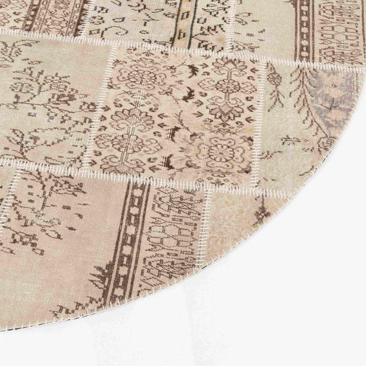 Oriental Round Rug Patchwork Hand Knotted Wool On Wool 250 x 250 Cm - 8' 3'' x 8' 3'' Sand C007 ER23
