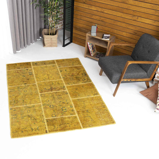Oriental Rug Patchwork Hand Knotted Wool On Wool 120 x 200 Cm - 4' x 6' 7'' Sand C007 ER01