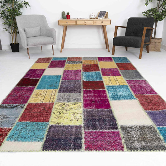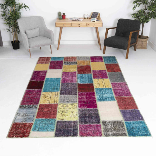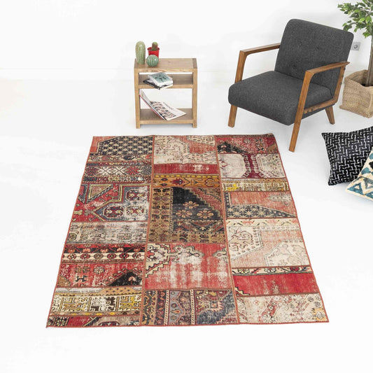 Oriental Rug Patchwork Handwoven Wool On Wool 110 x 164 Cm - 3' 8'' x 5' 5'' Multicolor C016 ER01