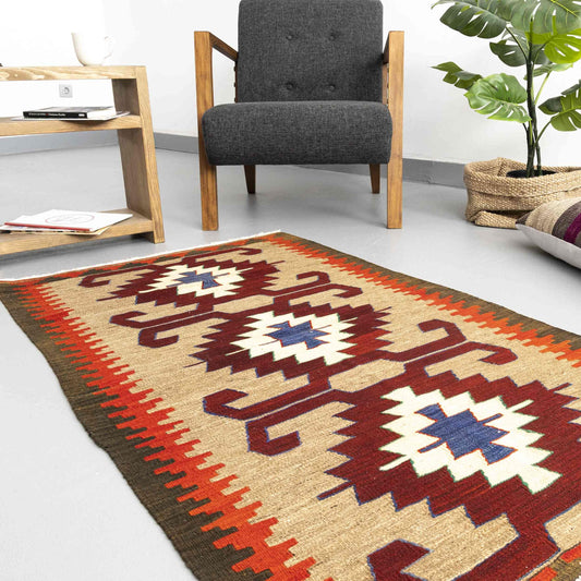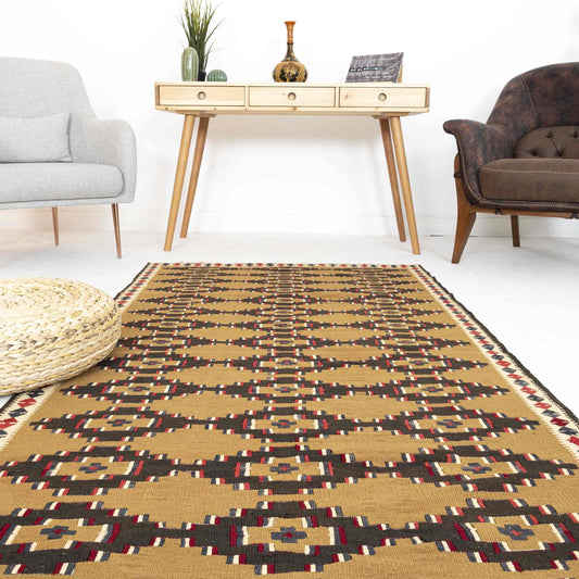 Oriental Kilim Anatolian Handmade Wool On Wool 95 x 128 Cm - 3' 2'' x 4' 3'' Sand C007 ER01