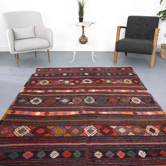 Oriental Kilim Anatolian Handmade Wool On Wool 160 x 190 Cm - 5' 3'' x 6' 3'' Multicolor C016 ER12