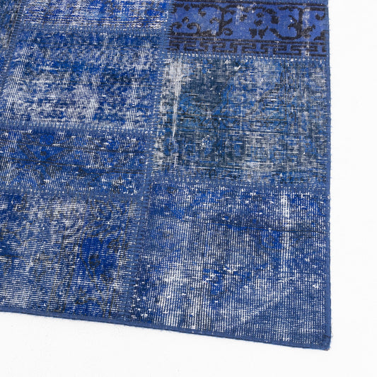 Oriental Rug Patchwork Hand Knotted Wool On Wool 168 x 239 Cm – 5' 7'' x 7' 11'' Navy Blue C012 ER12