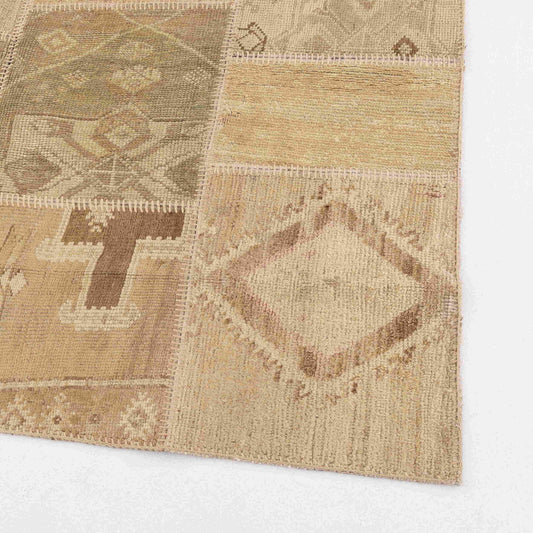 Oriental Rug Patchwork Hand Knotted Wool On Wool 168 x 248 Cm - 5' 7'' x 8' 2'' Stone C009 ER12