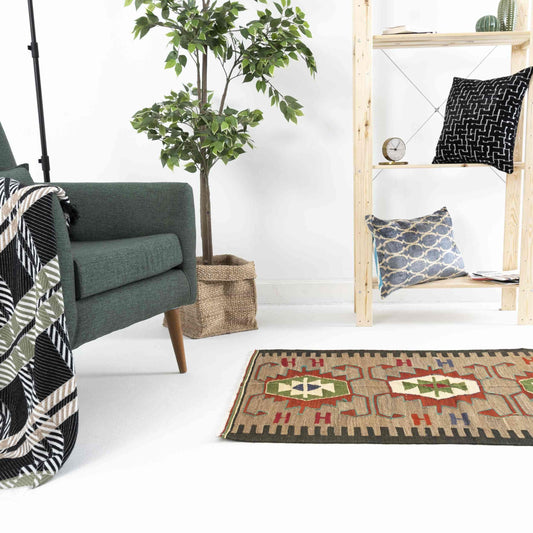 Natural materials and warm colors are frequently used in Mid-Century Modern interiors. Wood, glass, and metal are organic materials commonly found in this style. You can apply a similar approach when selecting rugs. Rugs made from natural fibers like wool, cotton, or jute add warmth and authenticity to your room, completing the Mid-Century Modern look. When it comes to color choices, earth tones, orange, yellow, and green hues reflect the spirit of this style, adding vibrancy and warmth.