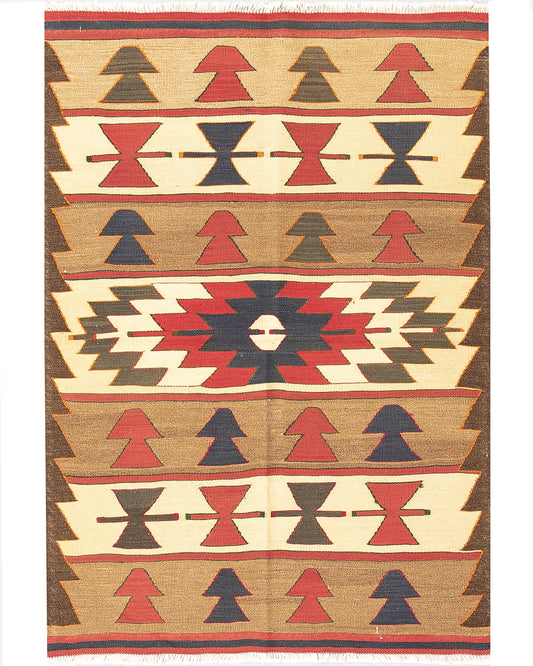 Oriental Kilim Anatolian Handmade Wool On Wool 126 X 184 Cm - 4' 2'' X 6' 1'' Sand C007 ER01