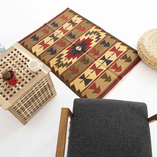 Oriental Kilim Anatolian Handmade Wool On Wool 93 X 130 Cm - 3' 1'' X 4' 4'' Sand C007 ER01