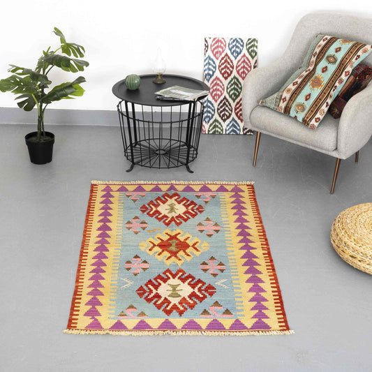 Oriental Kilim Anatolian Handmade Wool On Wool 94 X 140 Cm - 3' 2'' X 4' 8'' Light Blue C013 ER01