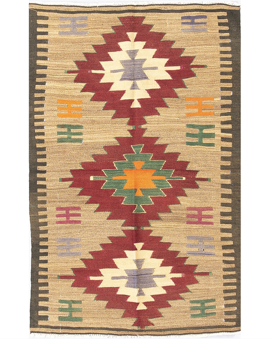 Oriental Kilim Anatolian Handmade Wool On Wool 102 X 143 Cm - 3' 5'' X 4' 9'' Sand C007 ER01