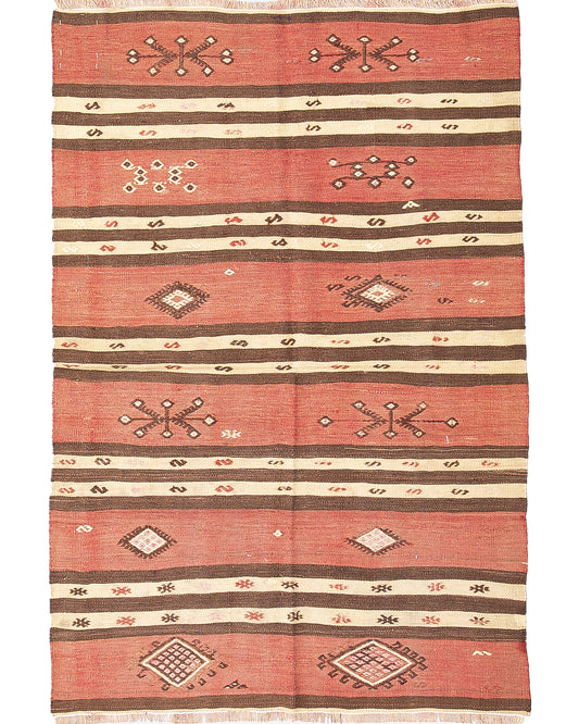 Oriental Kilim Anatolian Handmade Wool On Cotton 120 X 200 Cm - 4' X 6' 7'' Pink C004 ER01
