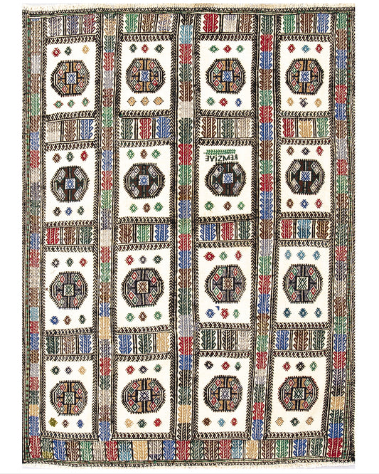 Oriental Kilim Cicim Handmade Wool On Wool 120 X 174 Cm - 4' X 5' 9'' White C022 ER01