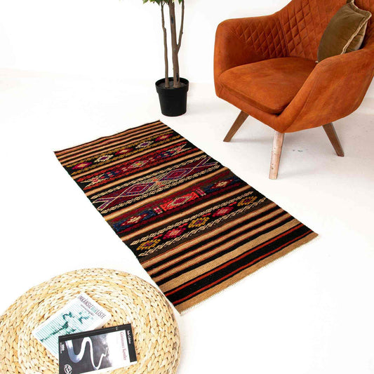 Oriental Kilim Cicim Handmade Wool On Wool 68 X 134 Cm - 2' 3'' X 4' 5'' Black C002 ER01