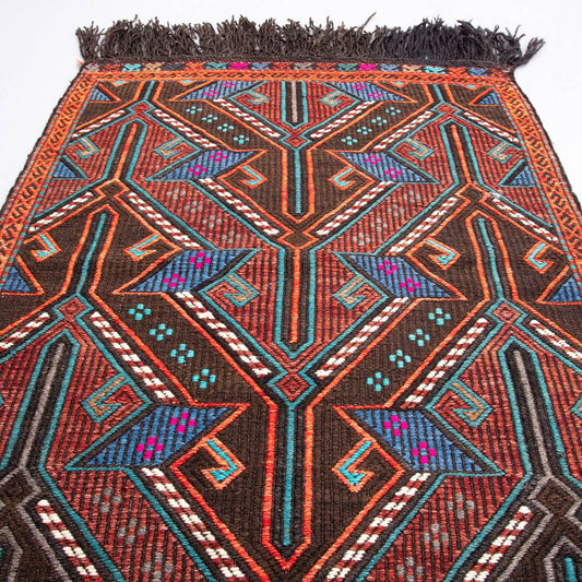 Oriental Kilim Cicim Handmade Wool On Wool 124 X 157 Cm - 4' 1'' X 5' 2'' Brown C005 ER01