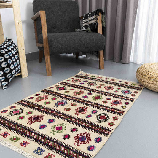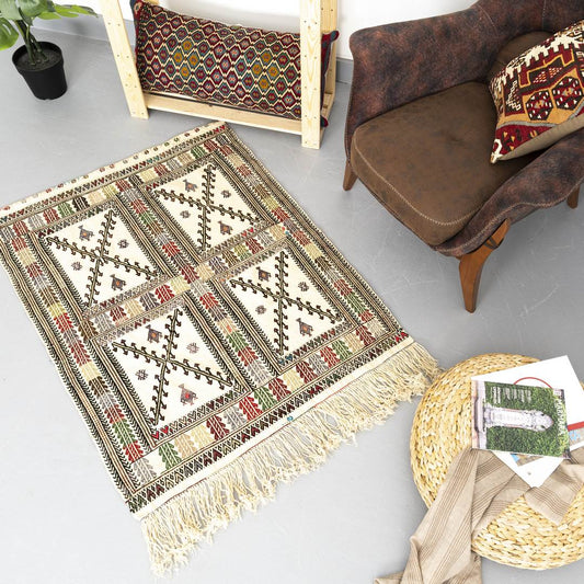 Oriental Kilim Cicim Handmade Wool On Wool 96 X 125 Cm - 3' 2'' X 4' 2'' Sand C007 ER01