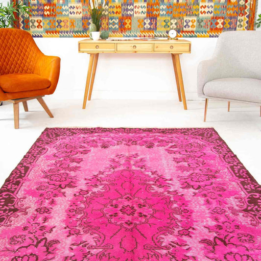 Oriental Rug Vintage Hand Knotted Wool On Cotton 160 x 270 Cm - 5' 3'' x 8' 11'' Pink C004 ER12