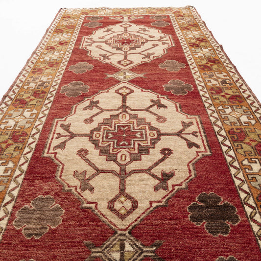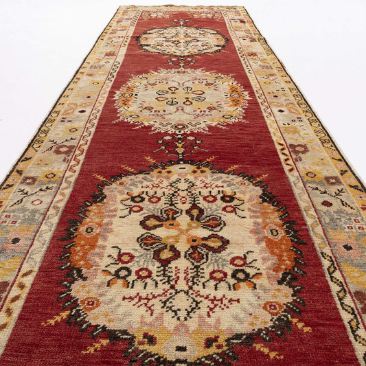 Oriental Turkish Runner Rug Handmade Wool On Wool Anatolian 135 X 360 Cm - 4' 6'' X 11' 10'' Red C014