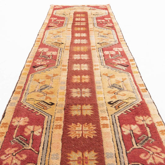Oriental Turkish Runner Rug Handmade Wool On Cotton Vintage 90 x 290 Cm - 3' x 9' 7'' Red C014