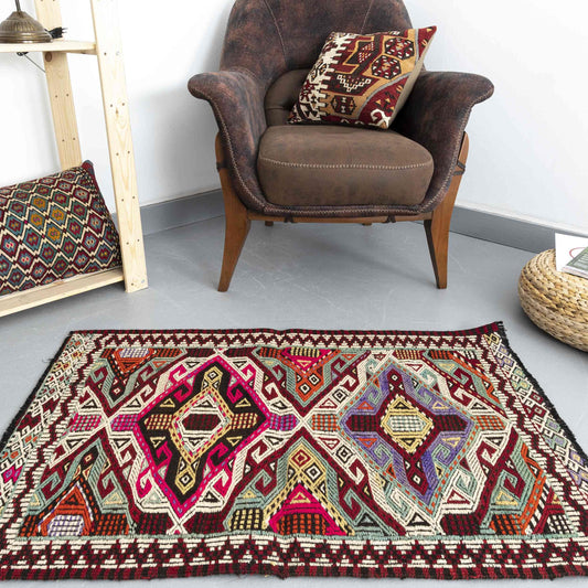 Oriental Kilim Cicim Handmade Wool On Wool 81 x 111 Cm - 2' 8'' x 3' 8'' Multicolor C016 ER01