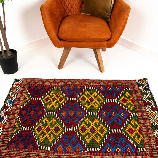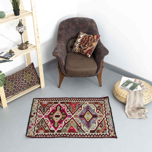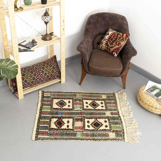 Handmade Kilim Wool On Cotton Unique 76 X 106 Cm - 2' 6'' X 3' 6'' Multicolor C016