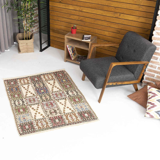 Oriental Kilim Cicim Handmade Wool On Wool 99 x 120 Cm - 3' 3'' x 4' Sand C007 ER01