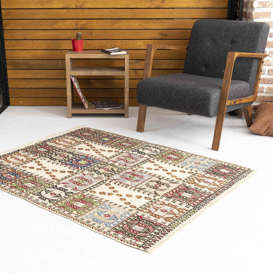 Oriental Kilim Cicim Handmade Wool On Wool 140 x 178 Cm - 4' 8'' x 5' 11'' Multicolor C016 ER01