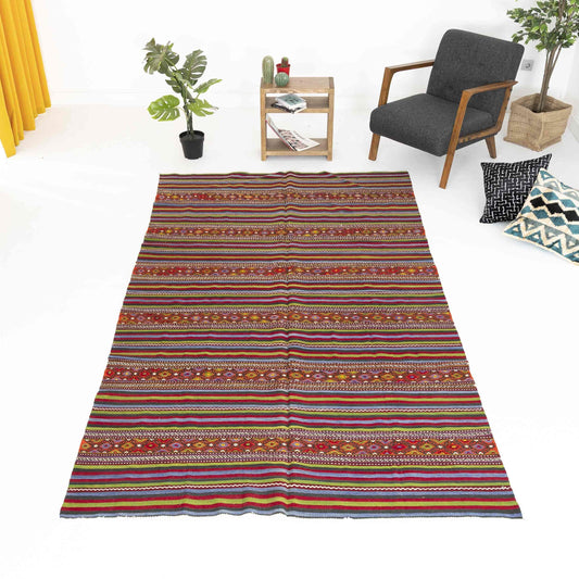 Oriental Kilim Cicim Handmade Wool On Wool 173 X 317 Cm - 5' 9'' X 10' 5'' Multicolor C016 ER12