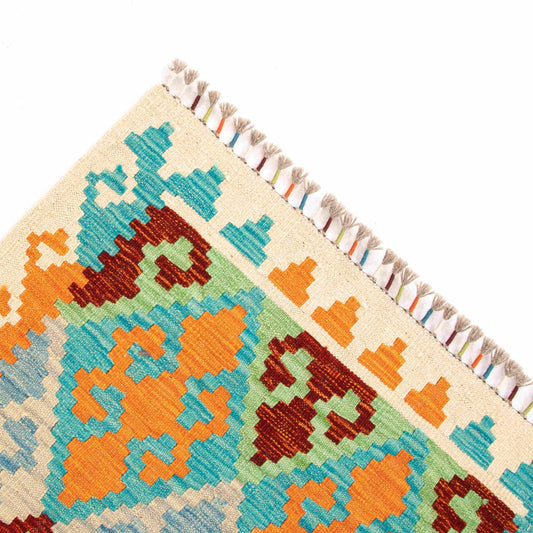 Oriental Kilim Anatolian Handmade Wool On Wool 97 X 160 Cm - 3' 3'' X 5' 3'' White And Multicolor C022 C016 ER01
