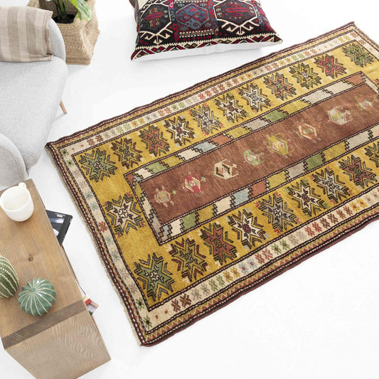 Oriental Rug Anatolian Handmade Wool On Wool 114 X 195 Cm - 3' 9'' X 6' 5'' Yellow C006 ER01