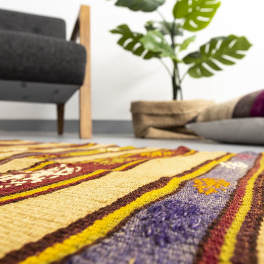 Oriental Kilim Anatolian Handmade Wool On Wool 125 X 150 Cm - 4' 2'' X 5' Yellow C006 ER01