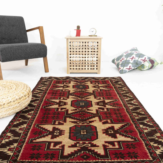 Oriental Rug Anatolian Hand Knotted Wool On Cotton 132 X 185 Cm - 4' 4'' X 6' 1'' Red C014 ER01