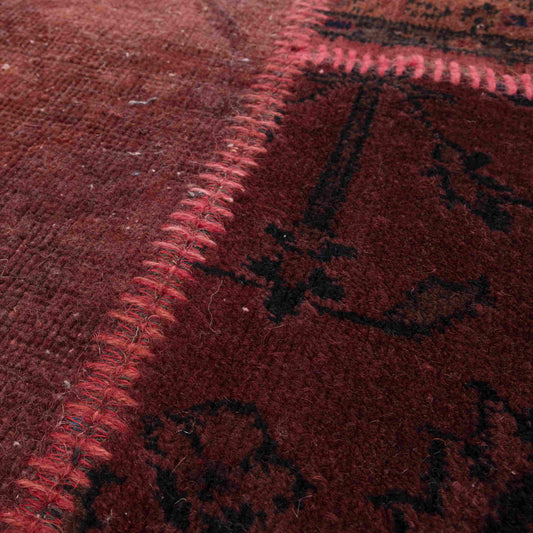 Oriental Rug Patchwork Hand Knotted Wool On Wool 101 x 170 Cm - 3' 4'' x 5' 7'' Burgundy C021 ER01