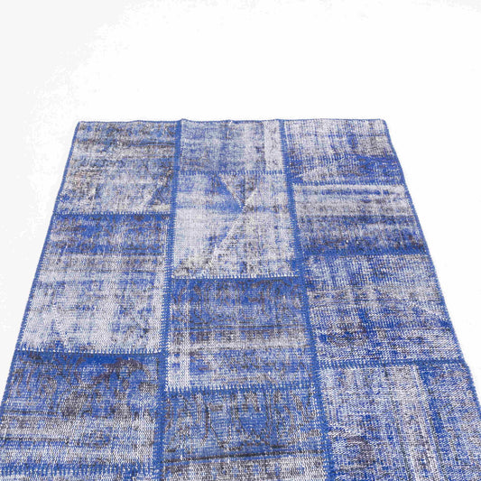 Oriental Rug Patchwork Hand Knotted Wool On Wool 121 x 203 Cm - 4' x 6' 8'' Blue C010 ER01