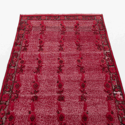 Oriental Rug Vintage Handmade Wool On Cotton 107 x 210 Cm - 3' 7'' x 6' 11'' Red C014 ER01