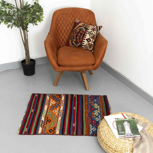 Oriental Kilim Cicim Handmade Wool On Wool 75 X 126 Cm - 2' 6'' X 4' 2'' Multicolor C016 ER01