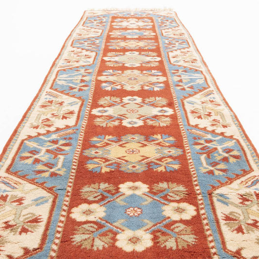 Oriental Turkish Runner Rug Handmade Wool On Cotton Anatolian 297 X 115 Cm - 9' 9'' X 3' 10'' Multicolor C016