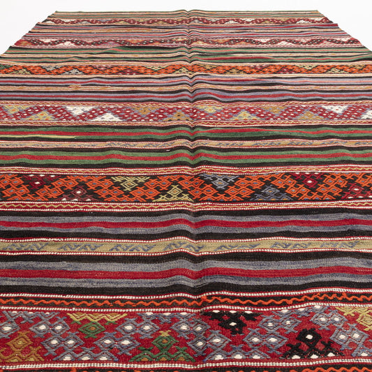 Oriental Kilim Cicim Handmade Wool On Wool 202 X 348 Cm - 6' 8'' X 11' 6'' Multicolor C016 ER23