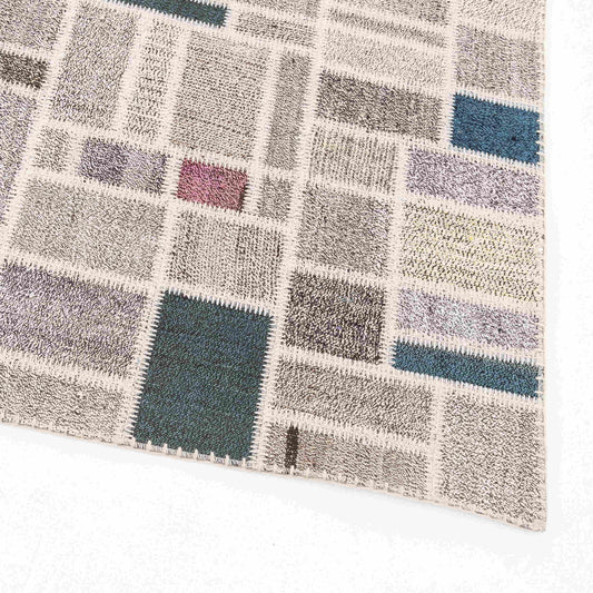 Oriental Rug Patchwork Hand Knotted Wool On Wool 315 x 393 Cm - 10' 5'' x 12' 11'' Grey C008 ER34